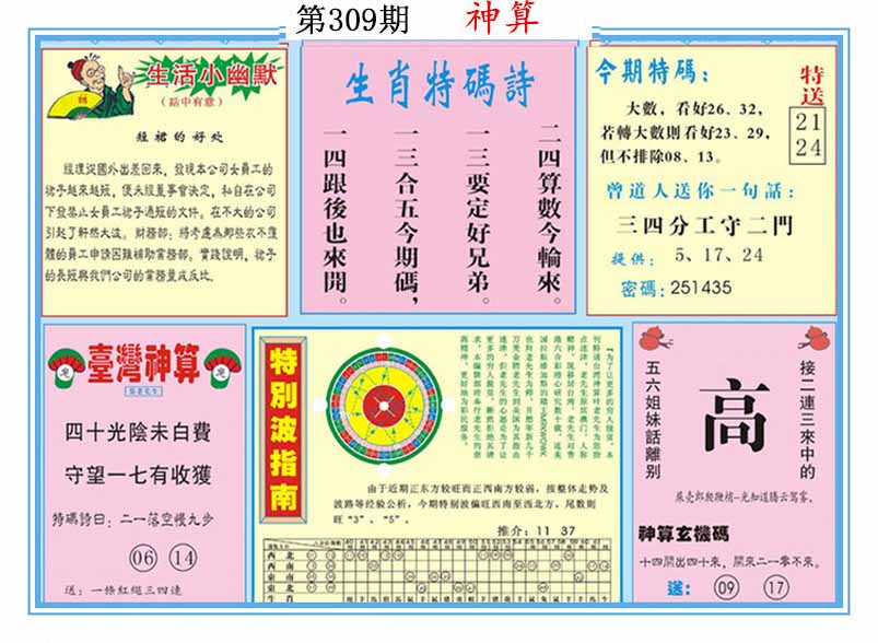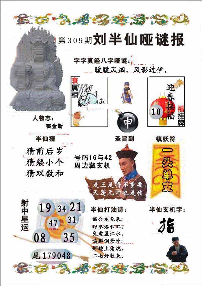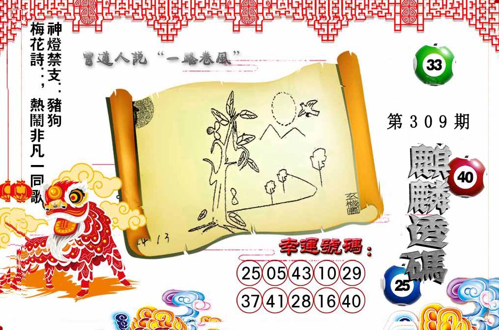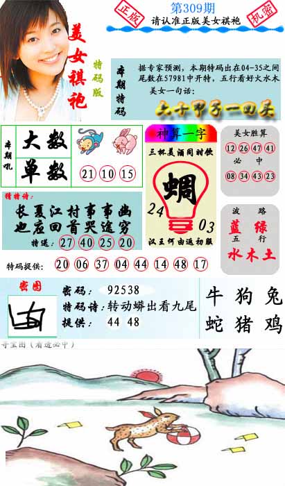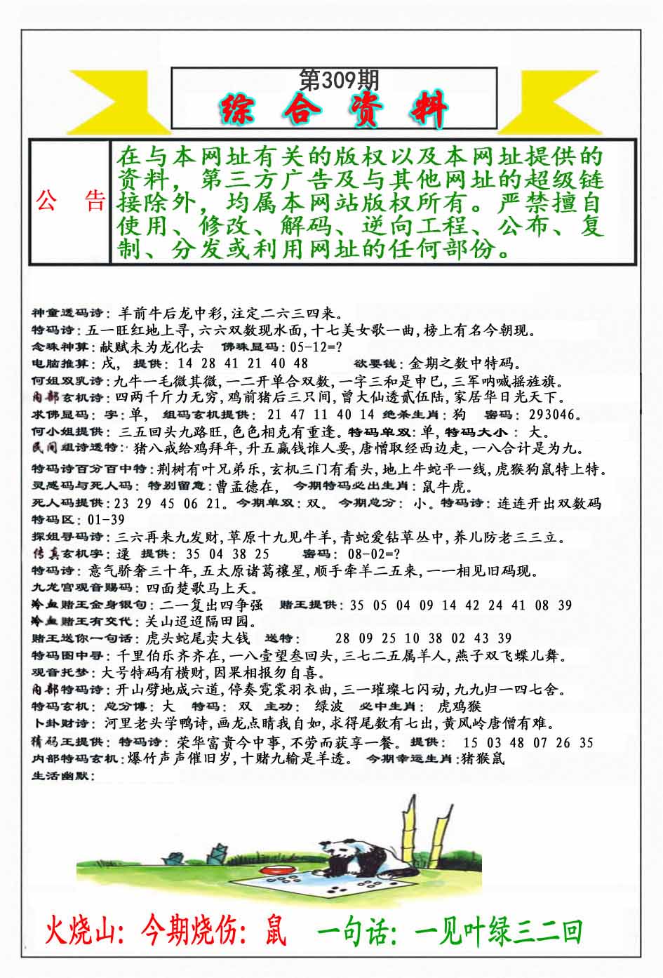 | 309期 | 羊 | 11合 | 蓝波 | 7尾 | 開:?00 |